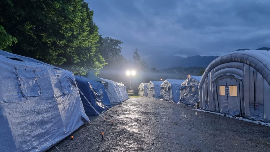 L’esercitazione prendeva il via prima dell’alba di mercoledì 24 maggio, con le previsioni meteo che preannunciavano piogge intense dal tardo pomeriggio che lasciavano presagire un’edizione più provante ma allo stesso tempo avvincente per i volontari. L’arrivo della colonna mobile che, scortata dalle forze dell’ordine, raggiungeva il foro boario di Lanzo Torinese accolta dal Sindaco Fabrizio Vottero, il quale, dopo aver aperto il Centro Operativo Comunale di Protezione Civile, ha ufficialmente dato il via alla XII edizione del Campo Scuola della Protezione Civile – Montana Valli di Lanzo 2023. Al sorgere del Sole oltre 130 Volontari erano già al lavoro nel Campo Base per allestire la tendopoli, le tensostrutture e la mensa da campo, operazioni proseguite per tutto il primo giorno.