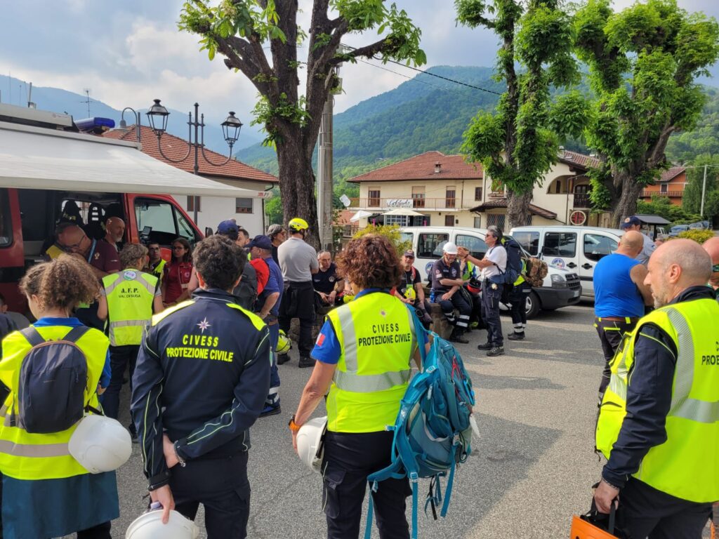 La sera, dopo le lezioni teoriche, le squadre nuovamente in azione con le operazioni di ricerca in notturna di persona dispersa durante un’emergenza idrogeologica. La lunga colonna di mezzi dei Volontari, dei Carabinieri e dei Vigili del Fuoco parte da Lanzo Torinese per giungere dopo oltre 30 km ai quasi 1400 metri del comune di Usseglio, nell’Unione Montana Alpi Graie e le operazioni si protraggono fino a notte fonda.