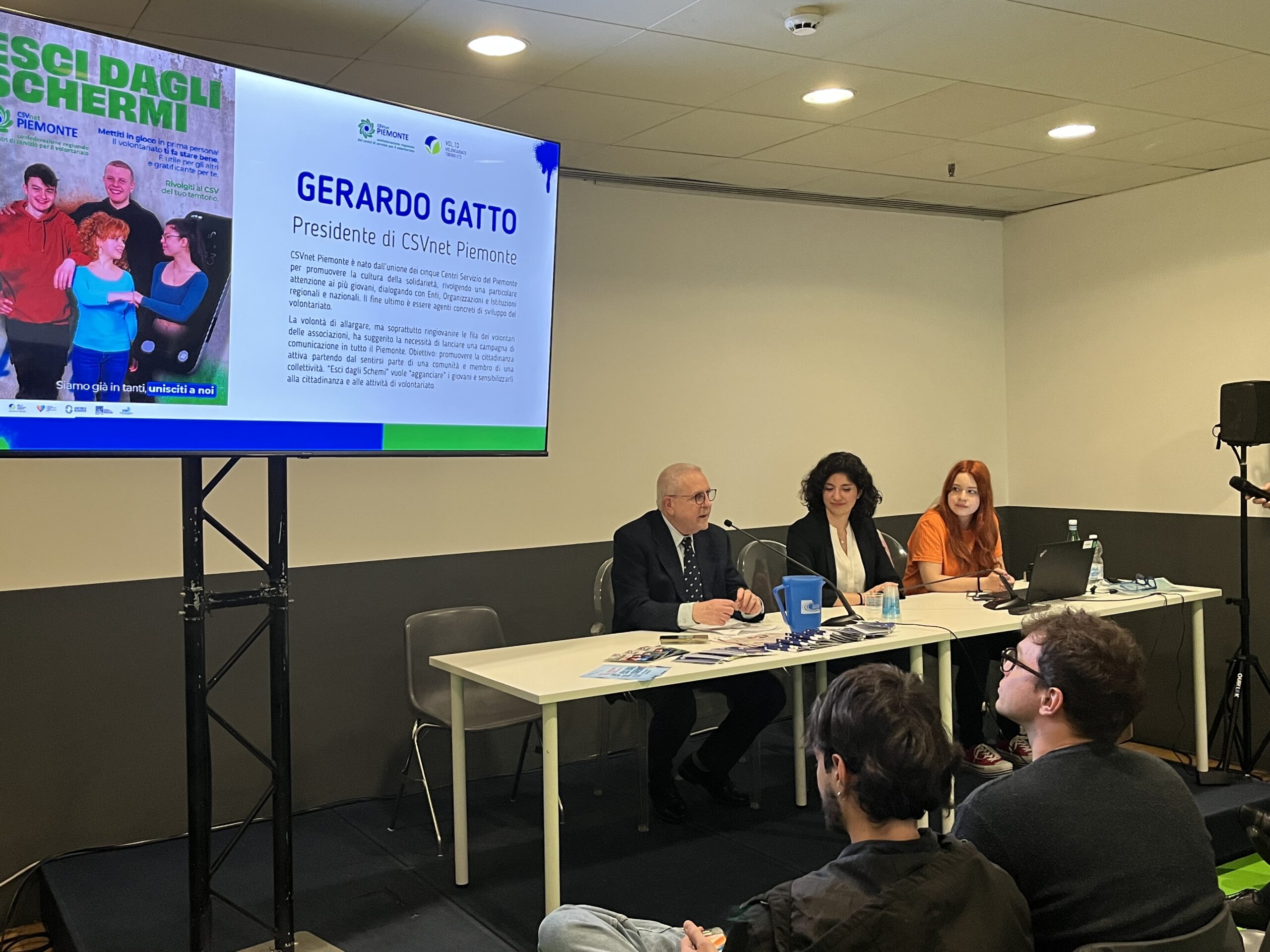 Al Salone del Libro di Torino Vol.To ETS e il coordinamento regionale dei Centri Servizio, CSVnet Piemonte, hanno presentato in un incontro appositamente organizzato la campagna di sensibilizzazione al volontariato “Esci dagli schermi”.